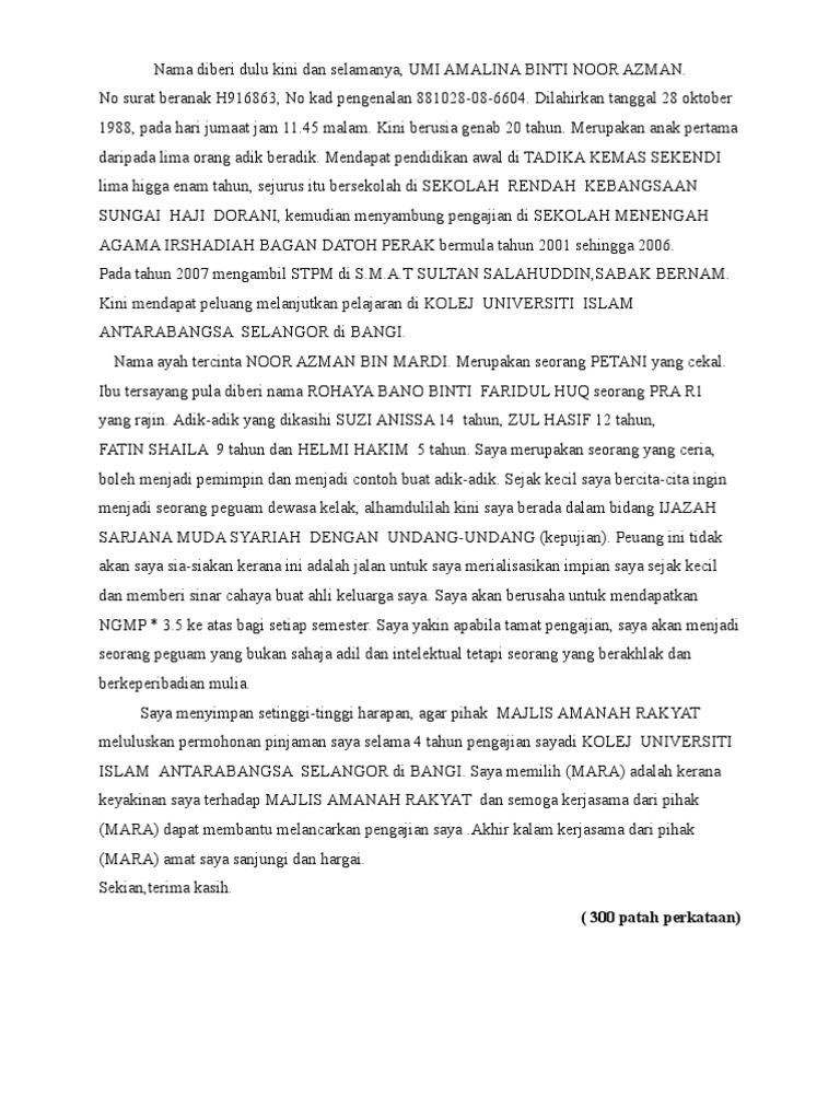 Sila buat semakan sendiri untuk alamat jpa yang sahih. Contoh karangan pinjaman MARA. Permohonan biasiswa memerlukan pernyataan yang menjelaskan akademik dan matlamat kerjaya dengan lengkap dan menarik.