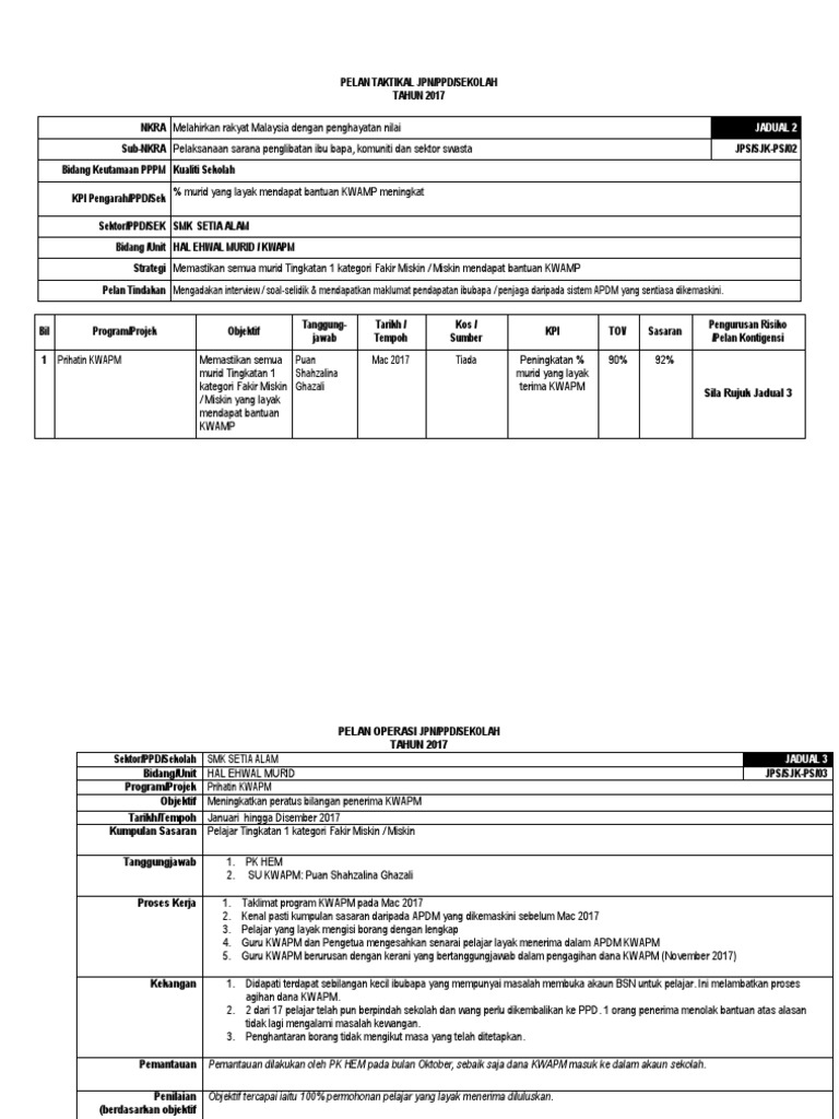 Pelan Taktikal Pelan Operasi Unit Kwapm 2017 2018 Pdf